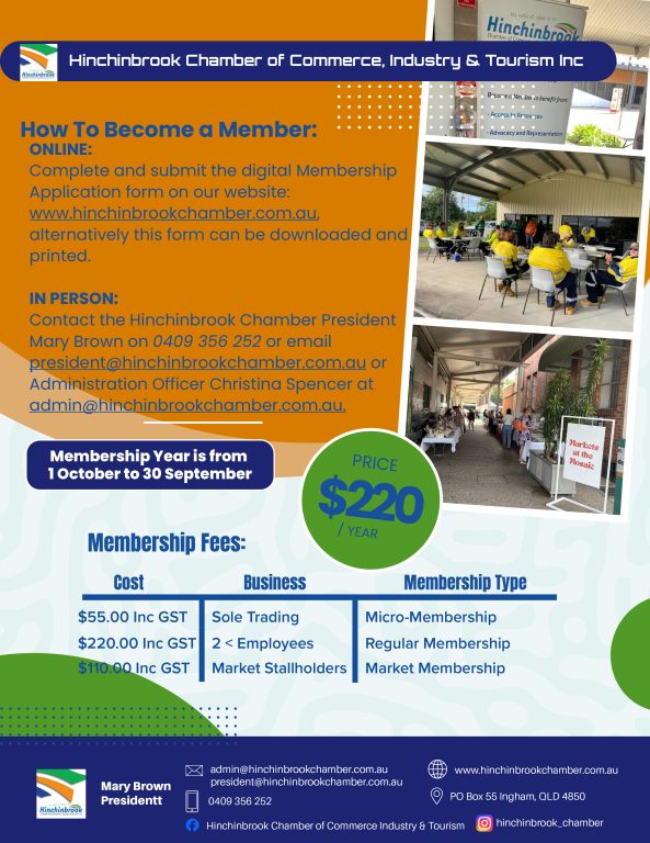 For more information, or to RSVP email admin@hinchinbrookchamber.com.au