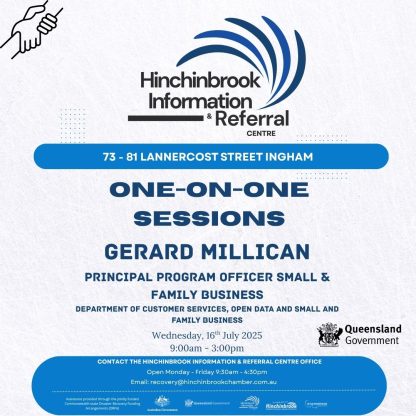 « All Events This event has passed. 1-on-1 Sessions with Gerard Millican – Small and Family Business 16 July @ 9:00 am - 3:00 pm « ❌BOOKED OUT!❌ PERSONAL BUSINESS – 1-on-1’s with QRIDA – SEVENTH SESSION🔵 Markets at the Mosaic » Add to calendar Google Calendar iCalendar Outlook 365 Outlook Live Details Date: 16 July Time: 9:00 am - 3:00 pm Organiser The Hinchinbrook Chamber of Commerce, Industry and Tourism Inc Venue Hinchinbrook Information & Referral Centre 73-81 Lannercost Street Ingham, QLD 4850 + Google Map