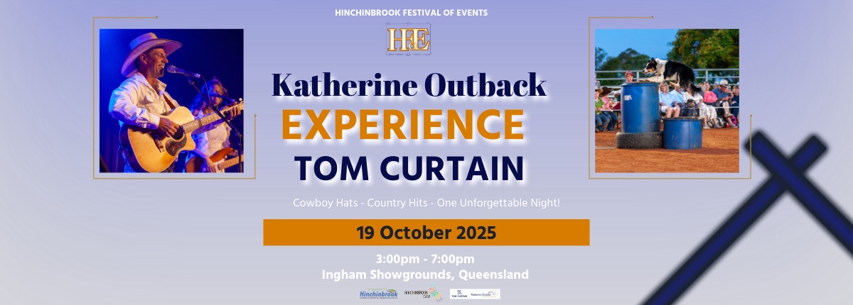 **All content from this webpage was sourced by the Hinchinbrook Chamber of Commerce, Industry & Tourism Inc with permission from Katherine Outback Experience: Tom Curtain Live Media Team and https://www.tomcurtain.com.au/tour-event-info/**